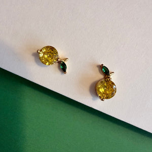A fresh pop of color for every day. These dainty yellow stones paired with a tiny green leaf create the perfect lemon-inspired sparkle—playful, bright, and effortless to wear.