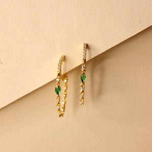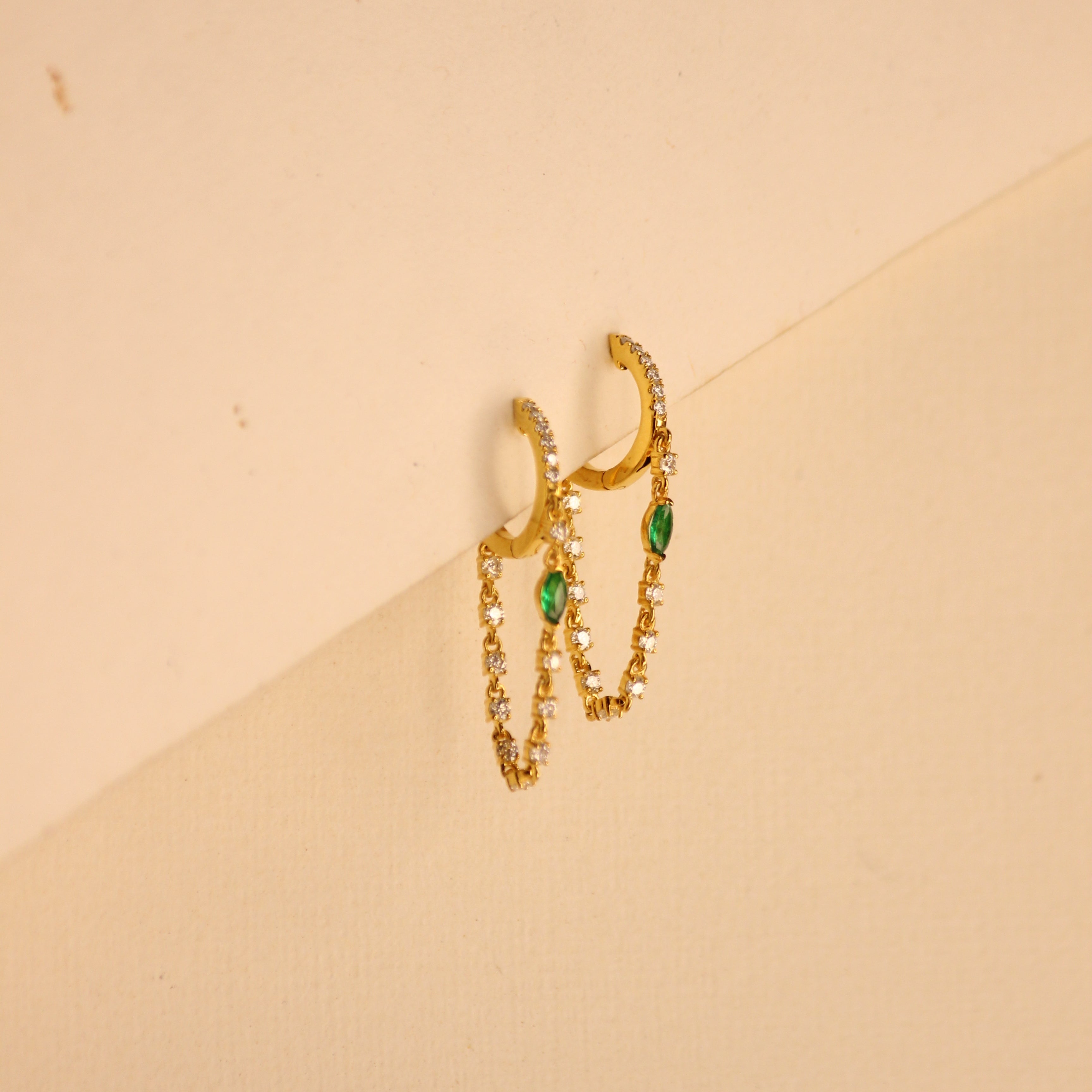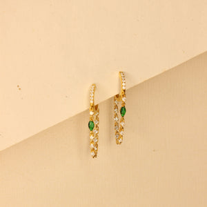 • Design: Slim huggies with pavé zirconia + marquise-cut emerald detail