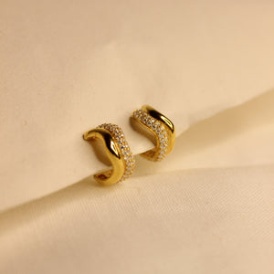 • Design: Wave-style huggie hoops with dual texture (smooth + pavé sparkle)
