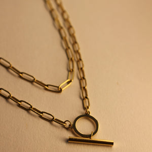 Two layers, one statement. The Faye Necklace pairs bold link chains with a sleek front toggle clasp for that effortless, styled-up look. Strong, versatile, and made to shine solo or stacked.