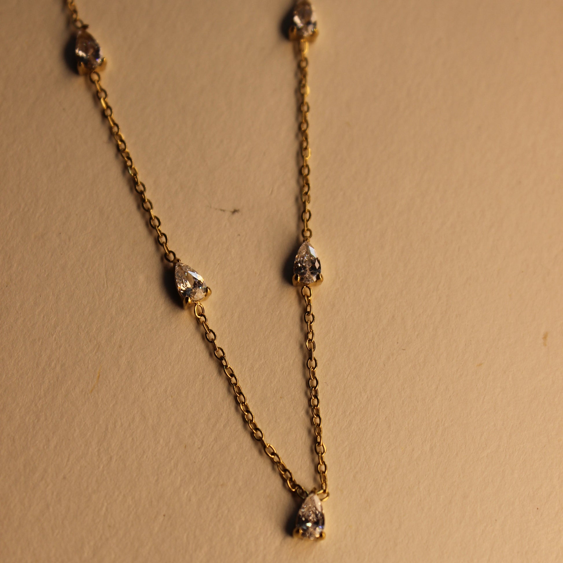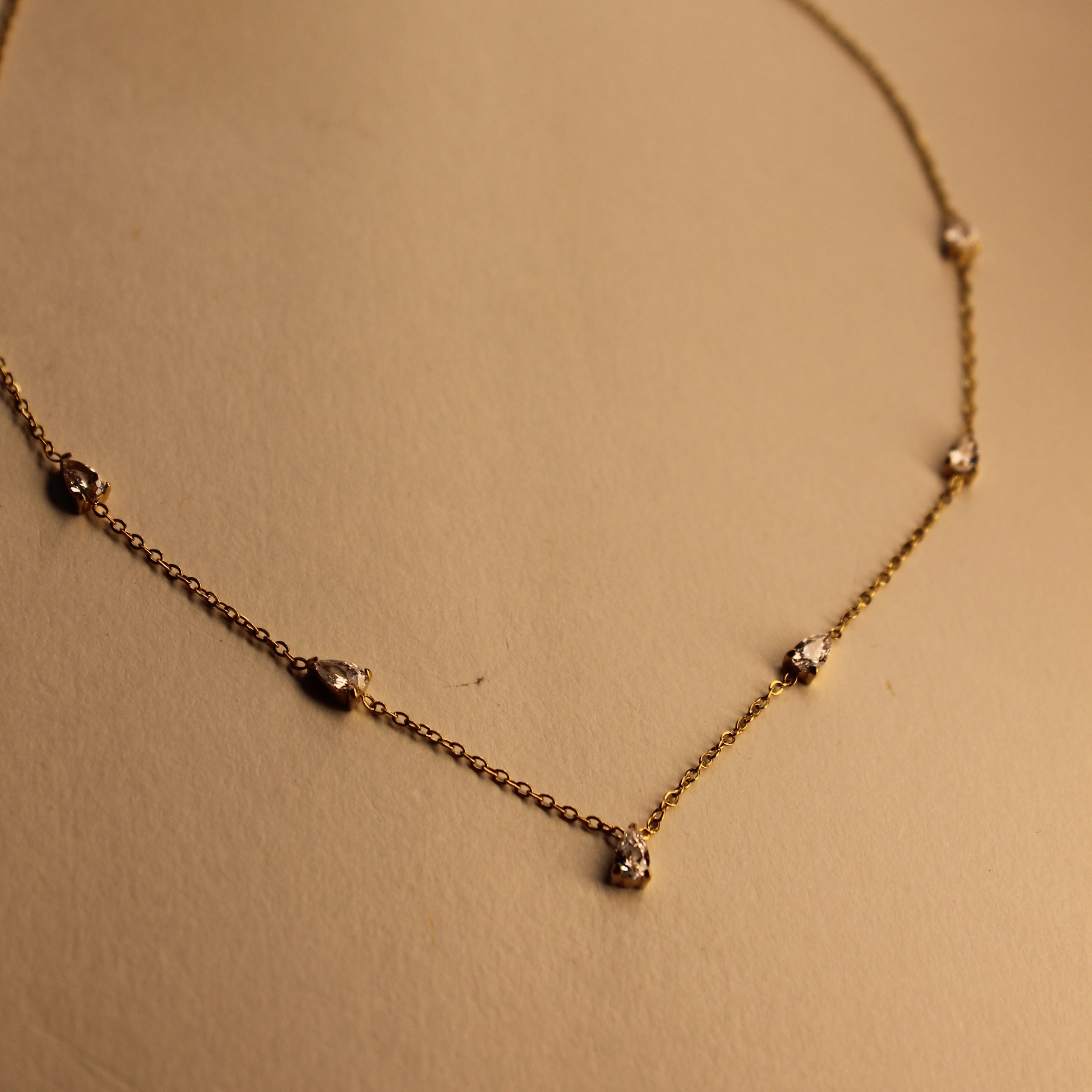 Delicate, sparkly, and just the right touch of luxe. A fine chain is dotted with seven pear-shaped diamonds, catching the light with every move. Minimal enough for every day, radiant enough for nights out.