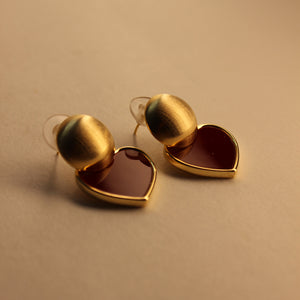 A love story, but make it bold. These rich crimson enamel hearts dangle from a chunky matte-finish top that demands attention. Playful, powerful, and impossible to miss.