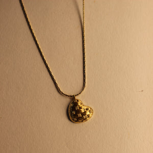 Let love linger with Amouré. Featuring a delicately textured heart charm on a golden rope chain, this necklace is your quiet statement of softness and strength. Wear it as a daily reminder: love always finds its way.