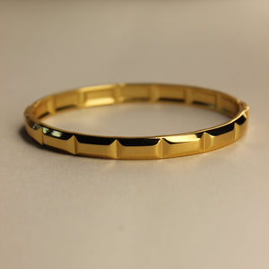 Minimalist with an edge — the Lior Bangle brings bold energy in a sleek, faceted design. Its polished finish and modern structure make it a day-to-night staple. Wear it solo or stack it for extra impact.