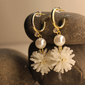 A little hoop, a little sparkle, and a whole lot of charm. These dangle earrings flow from a sleek half hoop to a diamond, a delicate pearl, and finish with floral-inspired bead clusters. Feminine, playful, and designed to bloom with you.