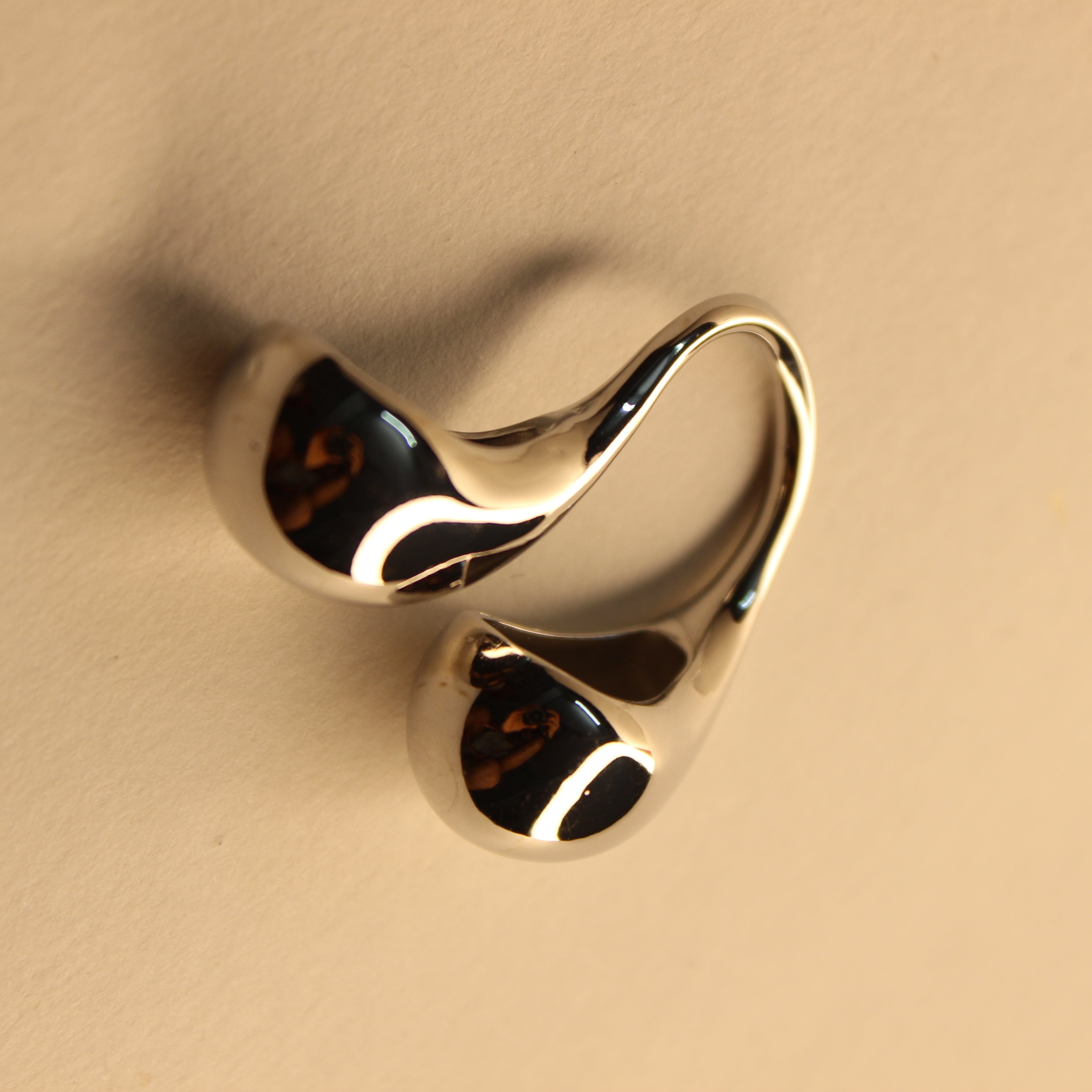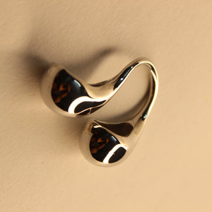 The Mireya ring is more than jewelry. It’s wearable sculpture. With its liquid-like curves and teardrop-shaped ends, this polished silver ring wraps around your finger like an ocean current hugging the shore. It feels fluid, feminine, and grounded. Made for the woman who carries grace like armor.