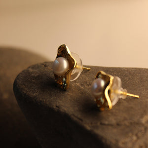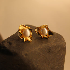 A luminous pearl wrapped in fluid golden petals. These studs balance soft glow with bold structure, making them an instant standout. Chic, modern, and made to pop.