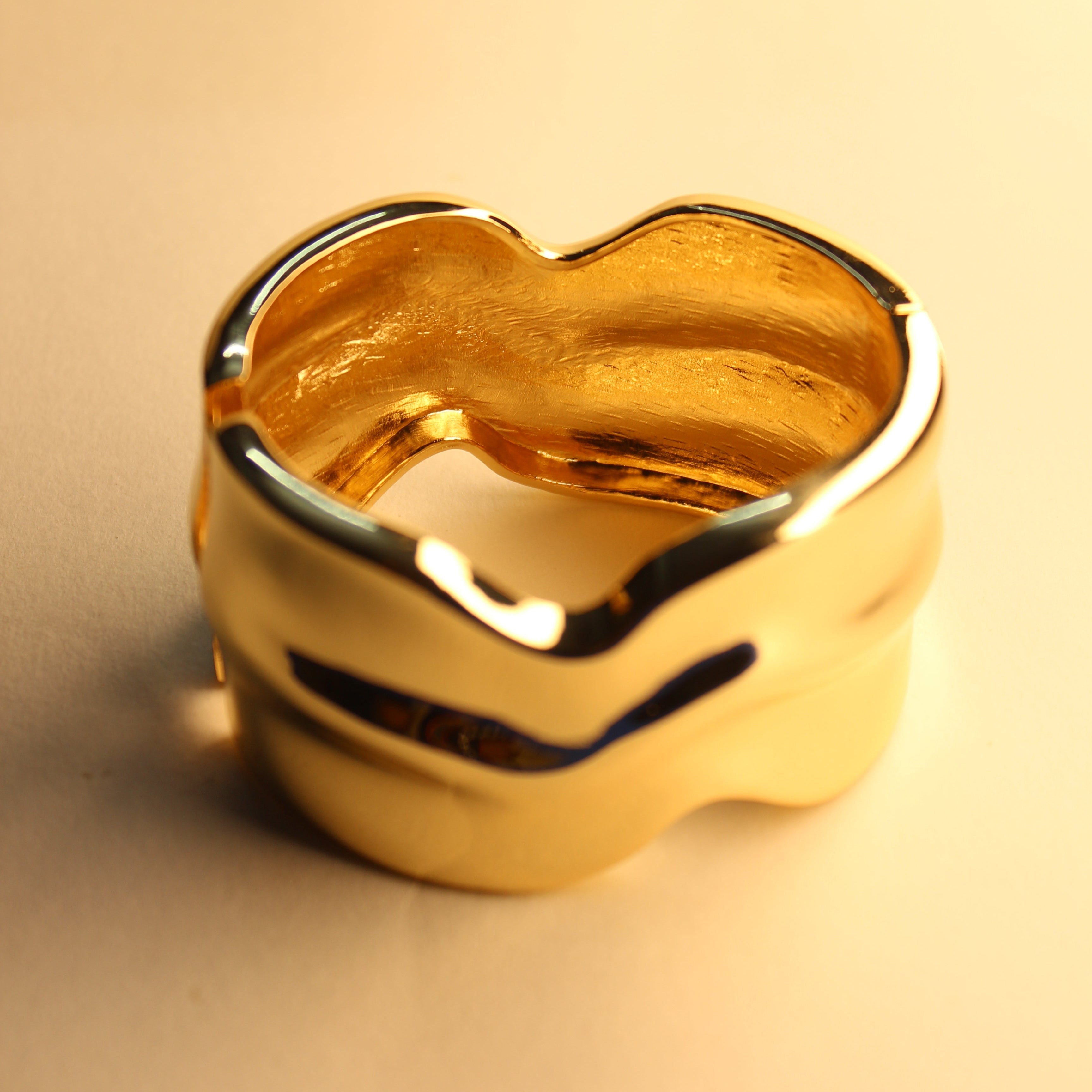 This sculpted cuff wraps your wrist in a wave of elegance, with a sleek silhouette that catches the light from every angle. Whether you’re layering it up or letting it shine solo, Rhea is your go-to for a confident, standout look.