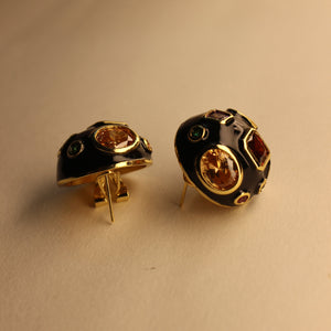 Bold, bossy, and a little bit retro. These statement studs serve vintage glam with a modern twist — glossy black enamel framed by playful, multi-shaped gemstones in rich tones. Wear them when you want your jewelry to speak first.