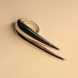 Say hello to Sivra. Your sharpest statement yet. Sleek, sculptural, and unmistakably bold, this silver claw ring doesn’t whisper, it roars. With its elongated twin peaks and high-gloss finish, Sivra channels fierce ocean tides and midnight energy.