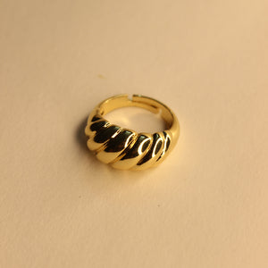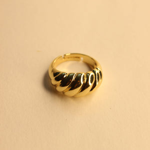 Meet Solvyn — your golden hour, captured in a ring. With its soft, twisted dome and high-gloss finish, this bold piece channels warmth, glow, and effortless charm in one powerful swirl.