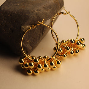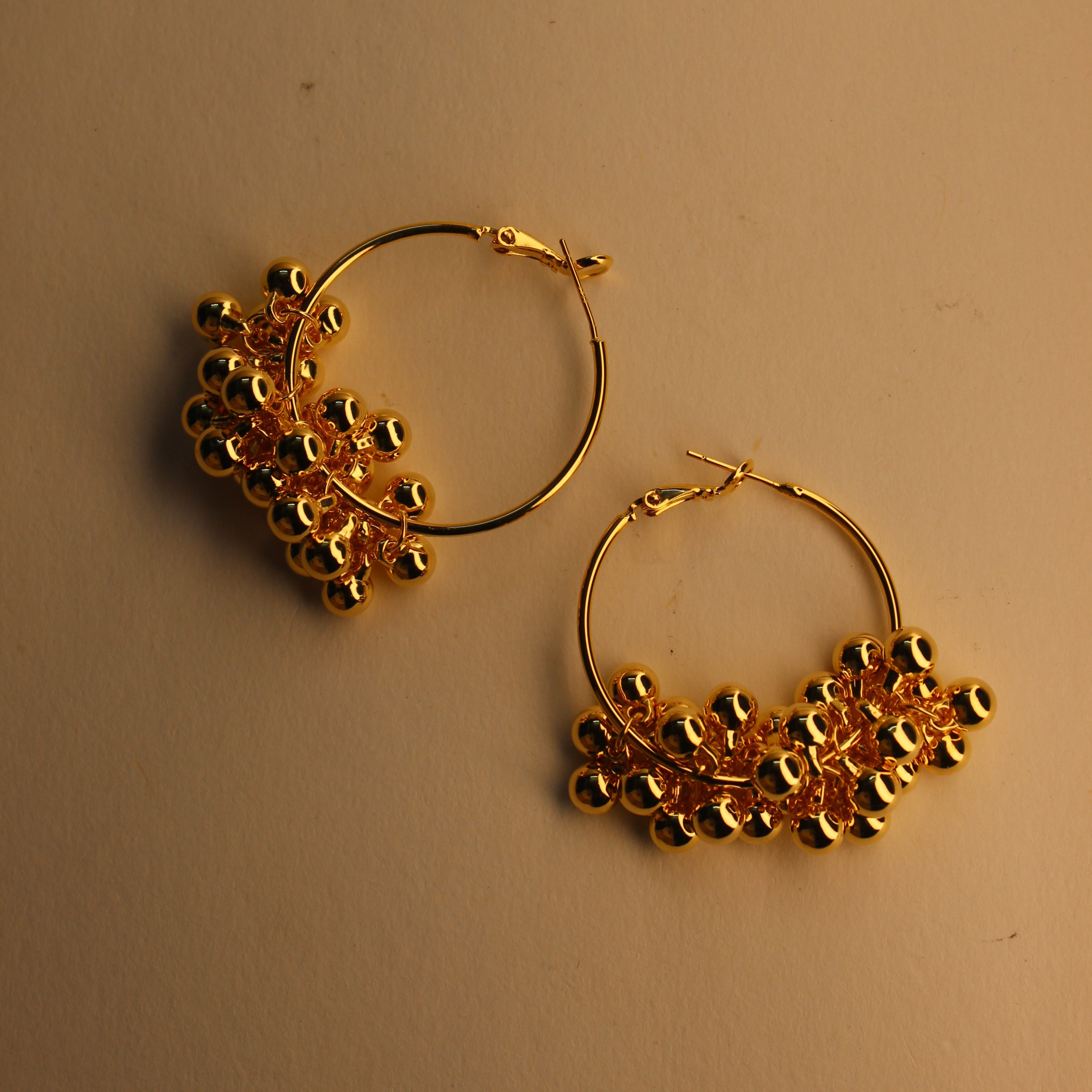 Lightweight hoops that know how to move. Clusters of golden beads sway and shimmer with every step, like dancing sun rays. Joyful, effortless, and made for your brightest days.