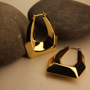 Geometry, but make it wearable. These structured hoops frame bold lines with a smooth inner curve for balance. Sleek, modern, and built for your everyday power look.