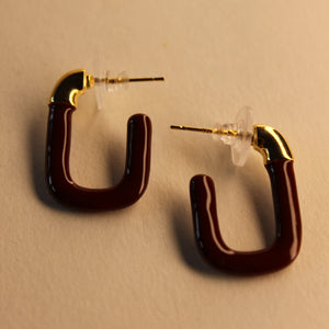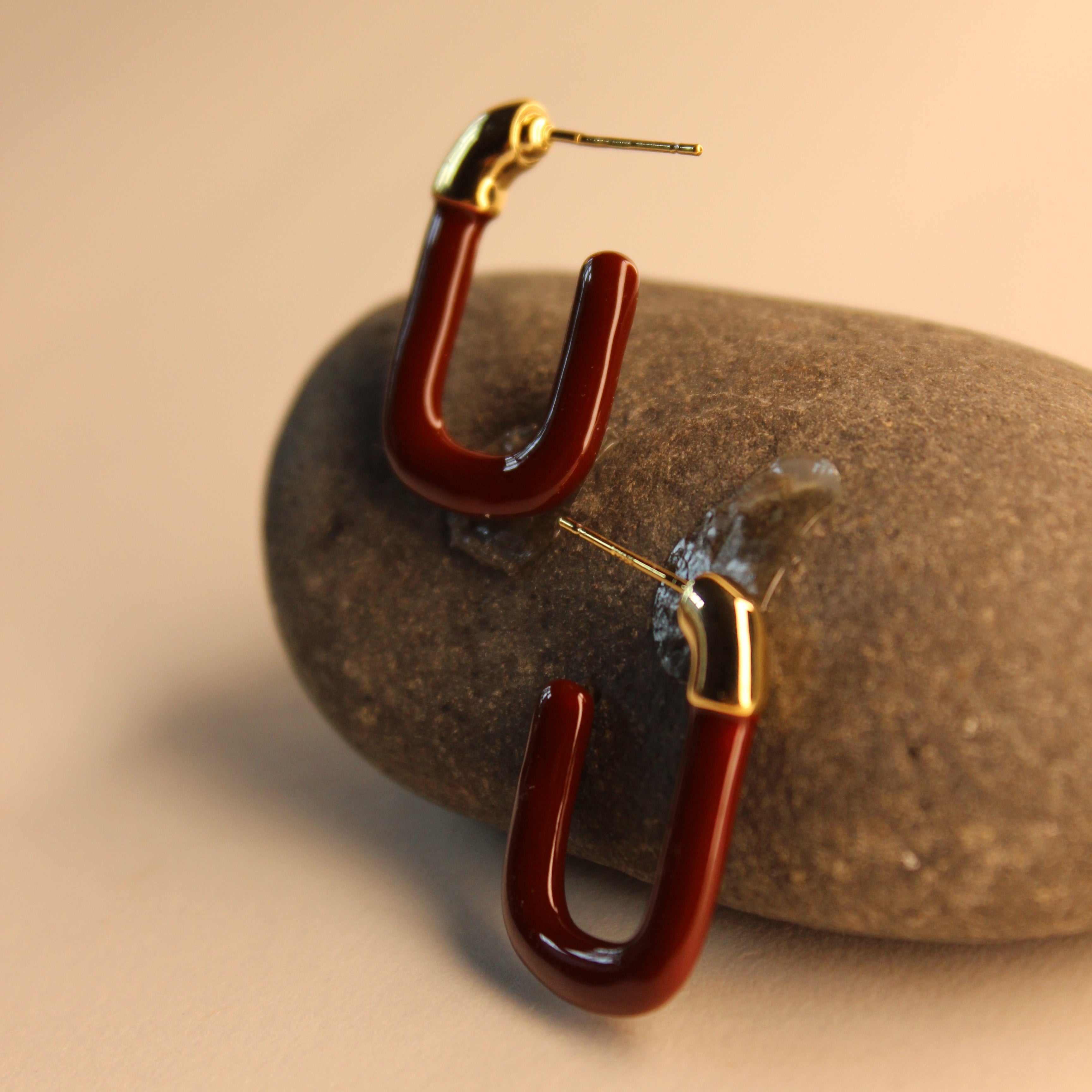 Rich cherry enamel meets golden detail in these bold half hoops. With their square silhouette and sculptural edge, they bring power and polish in one sleek swing. Luxe, playful, and made to turn heads.