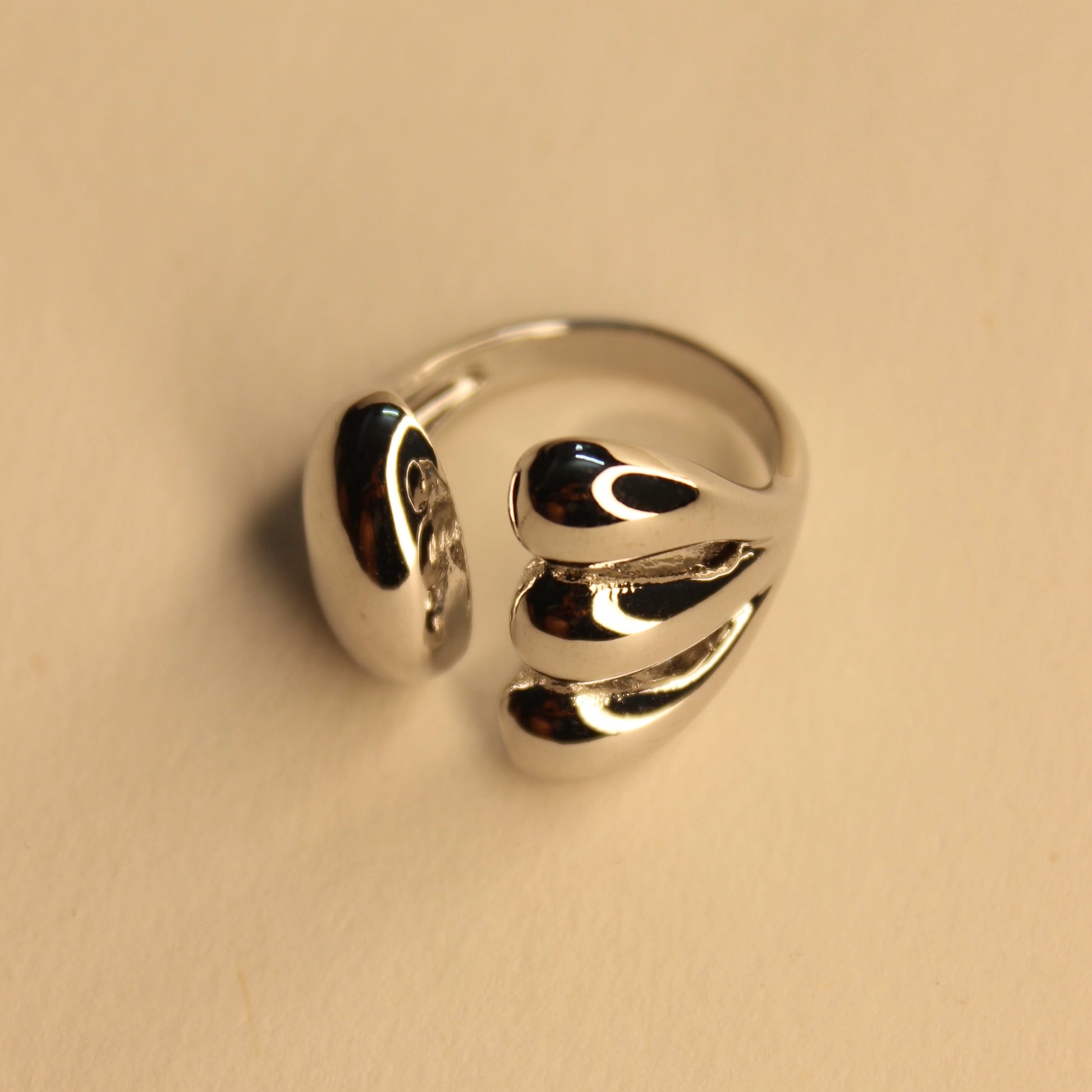 The Thira ring brings a bold edge to your everyday stack with clean curves that echo the motion of ocean tides. Its sculptural silhouette wraps the finger in a smooth, modern flow, making it the perfect balance of soft and strong.