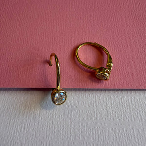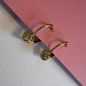 A sleek take on the everyday huggie. Nova features a smooth gold curve and a bezel-set stone that adds just the right amount of sparkle. Minimal, effortless, and made to shine with you—day or night.